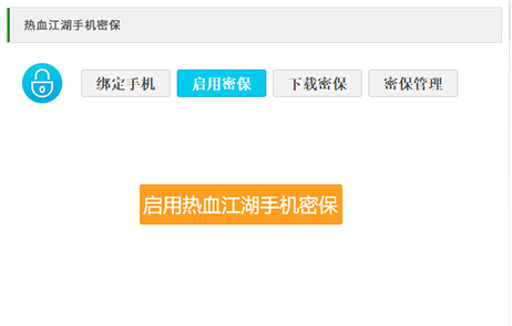 登录账号中心—绑定常用手机号码—启用热血江湖手机密保—下载密保app—使用绑定手机号码登录热血江湖手机密保app—使用手机密保各项功能